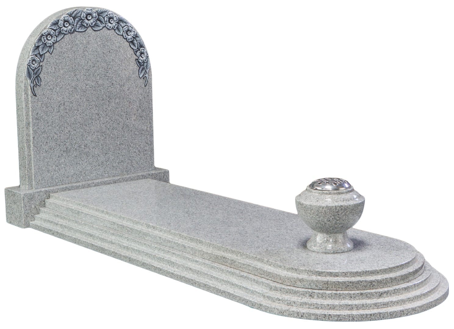 The WG109 Cemetery Kerb Set Memorial features exquisite carved and highlighted flowers, creating a harmonious design with the headstone’s shape reflected in the tiered kerbs and coverslab. Request a quote for this elegant memorial, available in various colours to honour your loved one’s memory.