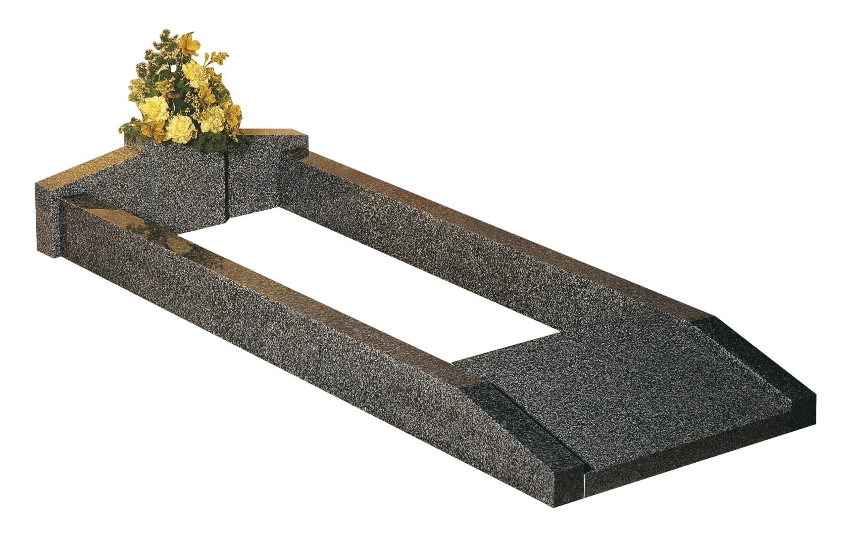 A dignified cemetery kerb set featuring a vase at the head end and lettering tablet at the foot, providing a complete memorial space to honour your loved one. The WG112 design offers a versatile canvas for personal tributes. Available in various colours.