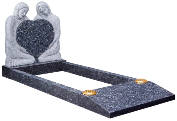The WG118 Cemetery Kerb Set Memorial features beautifully carved figures of Mary and Joseph embracing a heart, symbolising eternal love and faith. Complete with a desk tablet at the foot for additional inscriptions, this timeless memorial offers a dignified tribute to your loved one.