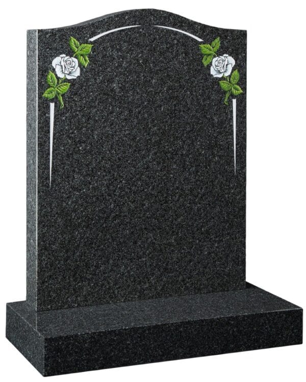 The WG18 Cemetery Memorial features a distinctive design with painted roses and an integral arch, creating an elegant and lasting tribute. Available in various colours, this memorial combines sophistication and artistic elements to honour your loved one’s memory.