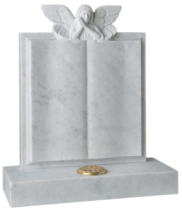 The WG190 Funeral Headstone offers a profound way to commemorate a cherished life. Crafted from exquisite marble, this memorial presents an intricately carved angel gracefully watching over a book-style memorial, symbolising guardianship and eternal peace.
