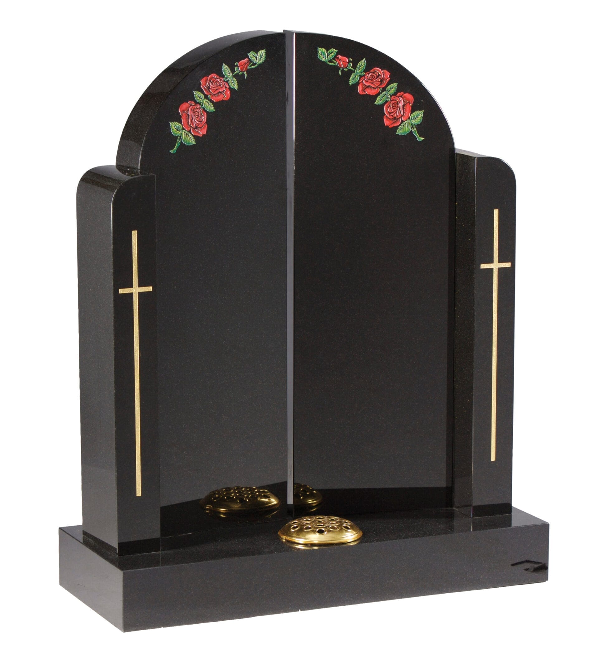 The WG204 Individual Monument features the symbolic Gates of Heaven design, crafted in elegant granite. With dual columns framing the gates and space for two separate inscriptions, this memorial offers a dignified tribute to commemorate two lives. Suitable for a double burial plot.