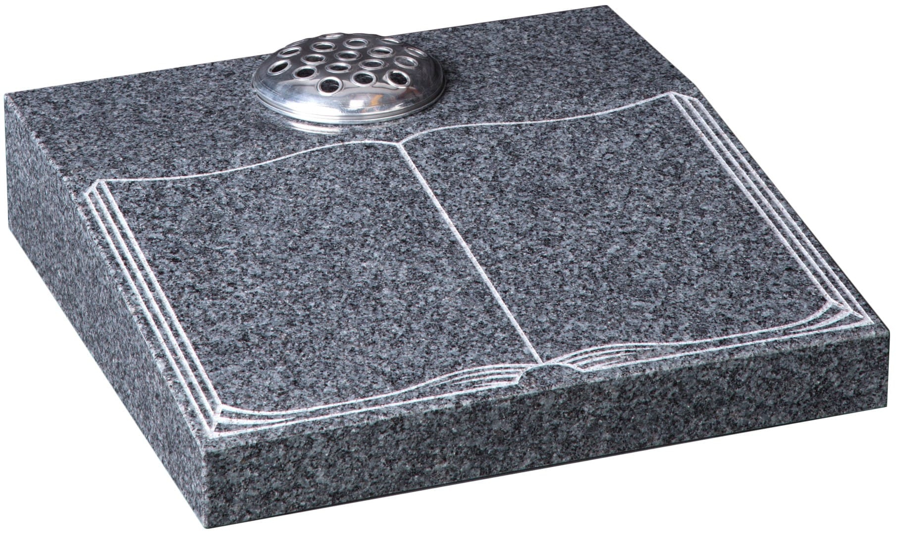 The WG254 Cremation Memorial features an elegant 18″ x 18″ x 4″-2″ (45.7cm x 45.7cm x 10.2cm-5.1cm) desk tablet with a beautifully sandblasted and highlighted book ornament. A dignified tribute for your loved one. Request a quote for pricing tailored to your specific requirements.
