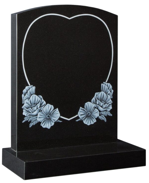 Below the heart motif, the headstone showcases meticulously crafted sandblast and highlighted poppies, creating depth and texture that honours remembrance and the natural beauty of life. These poppies can be colour-painted upon request, allowing for a more personalised and vibrant tribute.