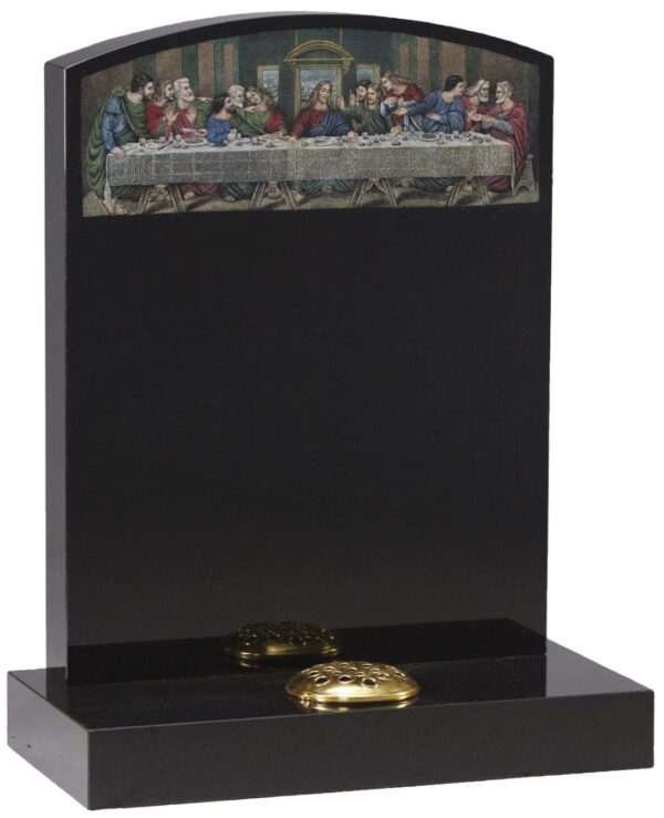 The WG42 Cemetery Memorial is a dignified tribute featuring a captivating shadow-punched and painted Last Supper scene. Crafted from premium granite with meticulous attention to detail, this timeless memorial offers a meaningful way to honour your loved one’s memory.