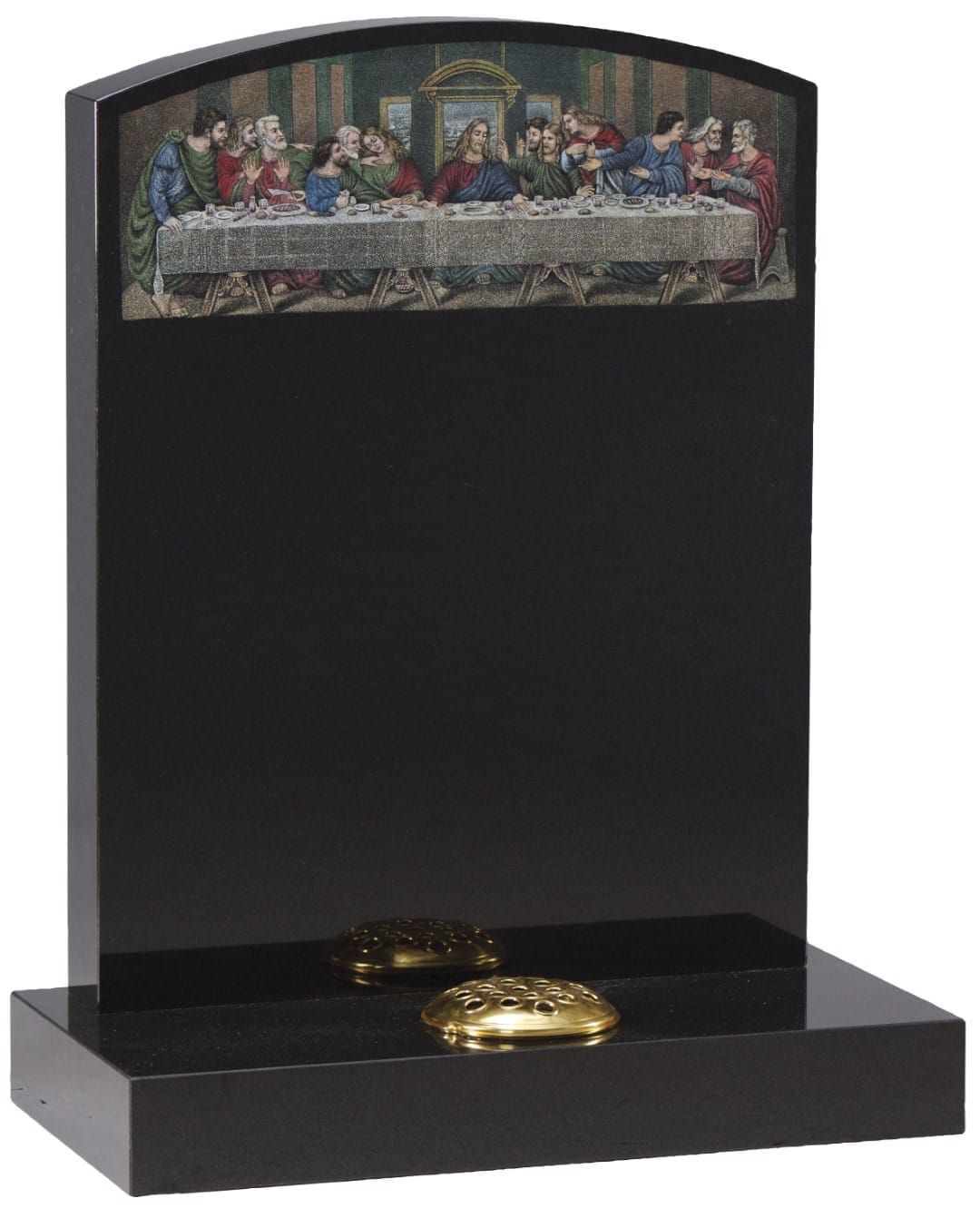 The WG42 Cemetery Memorial stands as a solemn and beautiful tribute to commemorate a cherished life. This elegant memorial showcases exquisite craftsmanship through its detailed shadow-punched and painted Last Supper scene, created by skilled artisans.