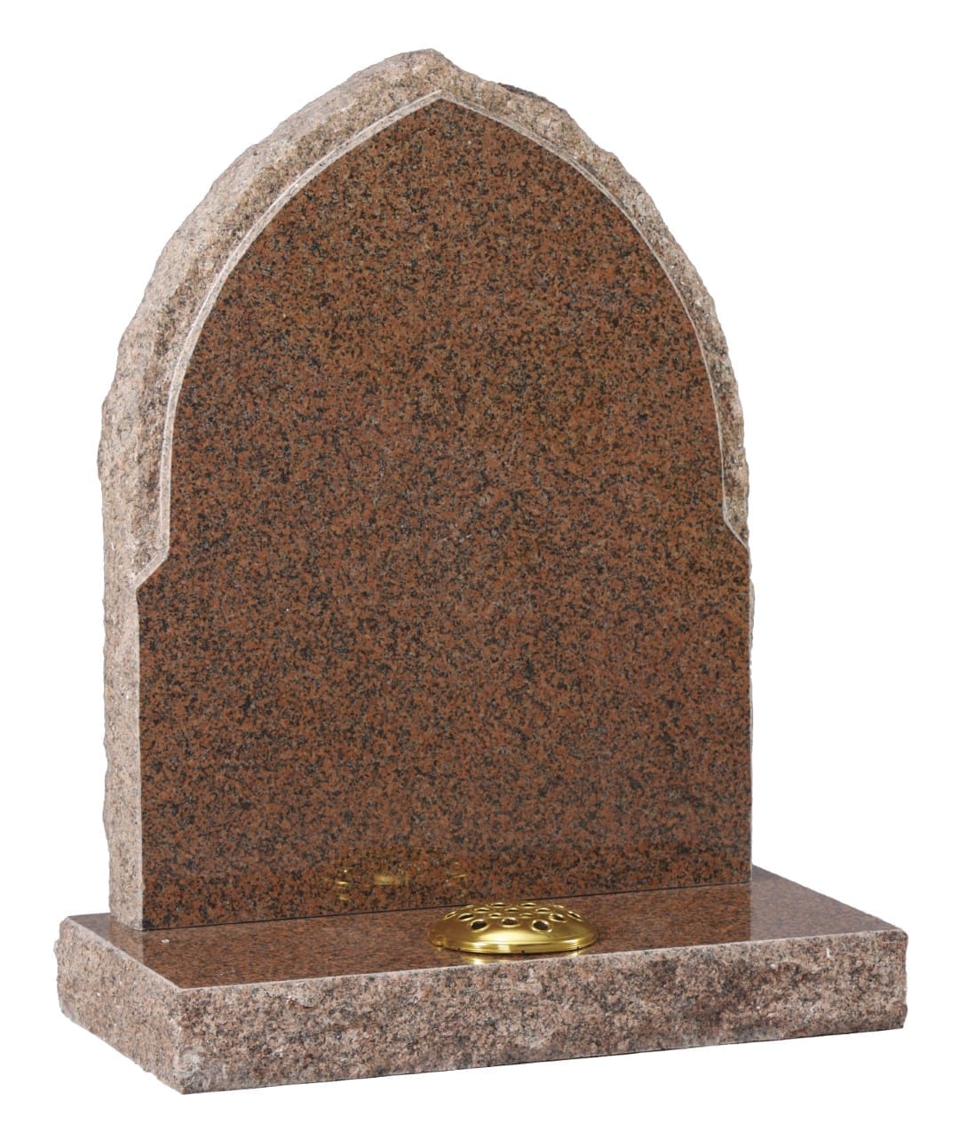 The WG63 Hand Carved Memorial features a distinctive gothic-shaped headstone with pitched edges and face margin, expertly crafted from premium Balmoral Red granite. This elegant memorial offers a timeless tribute with its classic design and exceptional craftsmanship.