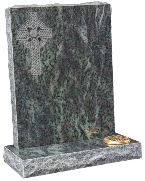 The WG68 Hand Carved Memorial features a beautifully carved Celtic cross on Tropical Green granite with a striking pitched edge design. This elegant tribute combines traditional craftsmanship with timeless symbolism, creating a dignified and meaningful memorial.