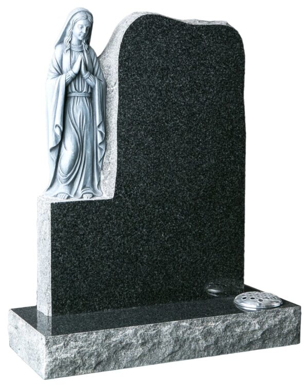 The WG82 Hand Carved Memorial features a highlighted depiction of Our Lady on a rustic-style headstone. Crafted from high-quality granite, this memorial offers a spiritually meaningful tribute to honour your loved one’s memory with dignity and reverence.